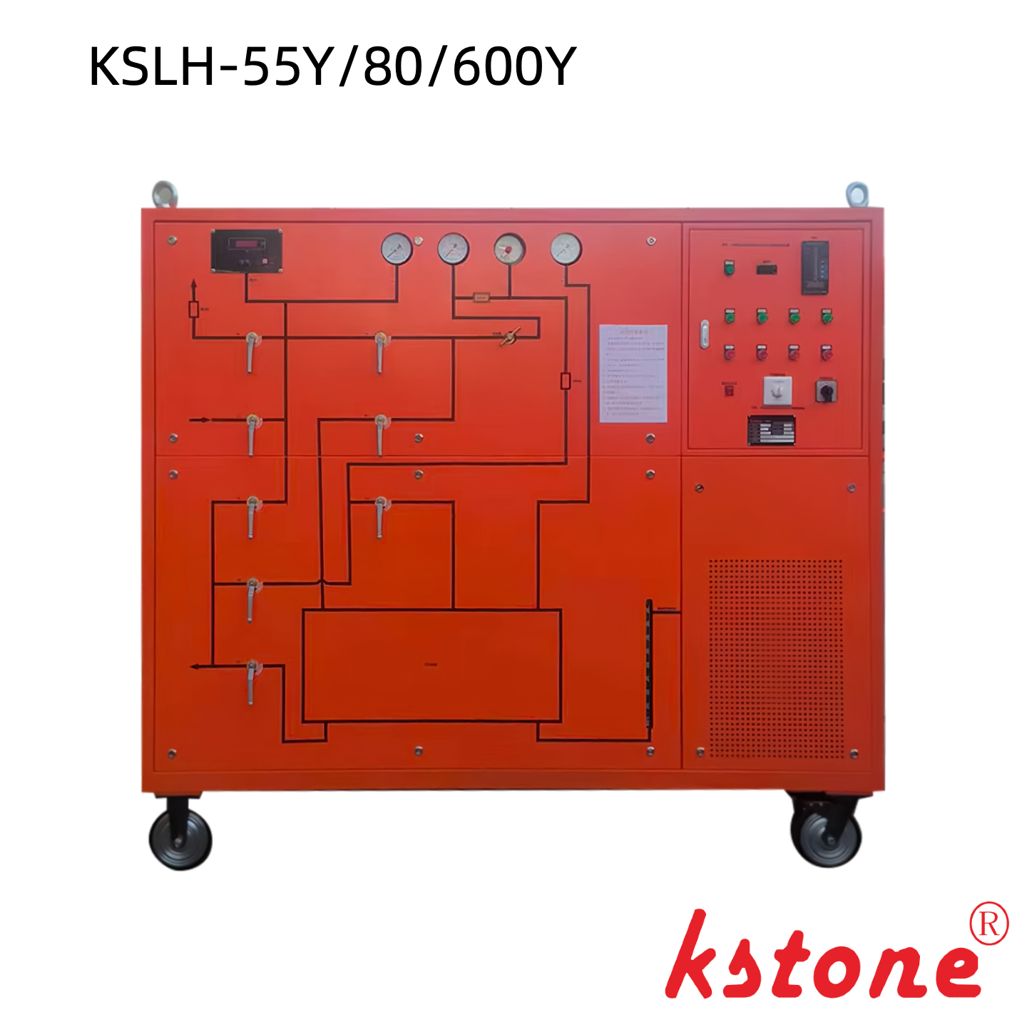KSTONE KSLH-55Y/80/600Y is a professional manual SF6 negative pressure recovery unit with 600L liquid storage capacity, specially designed for high-voltage switchgear (GIS) manufacturers and maintenance service providers. Adopting high-pressure refrigeration liquefaction and air-cooled technology, this mobile hand-push type equipment can realize efficient recovery, purification, liquefaction storage and refilling of SF6 gas. It can reduce the residual pressure of SF6 in GIS to 1kPa (absolute pressure), with a purification efficiency of up to 99.99%, which fully meets the industrial application requirements of SF6 gas recycling and environmental protection.